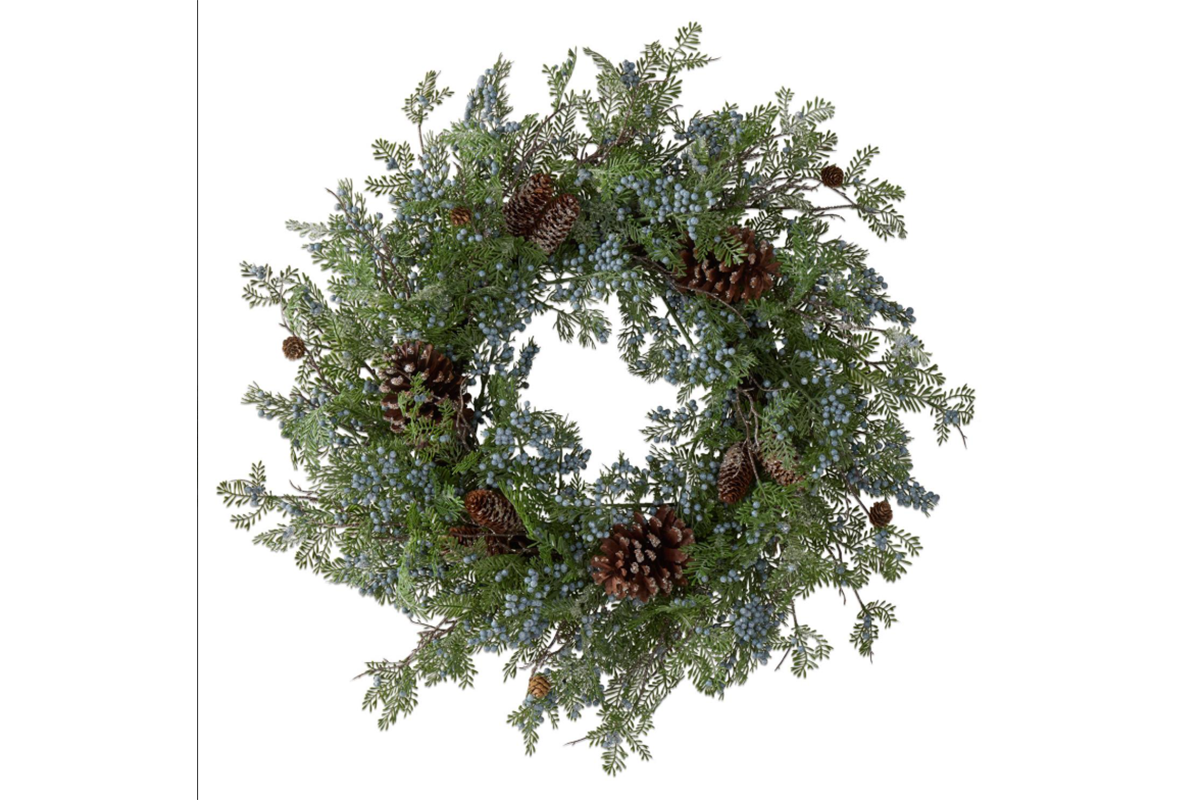 26.25" Mixed Greens Wreath w/ Glittered Pinecones