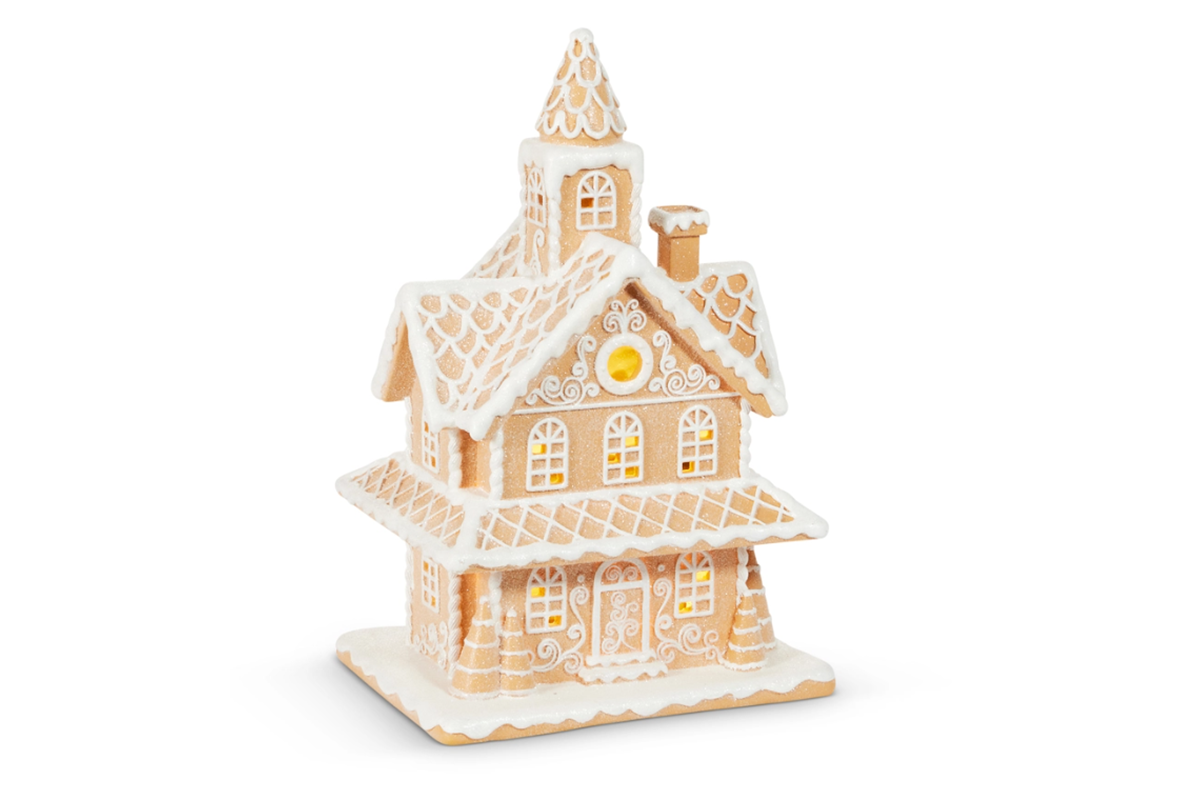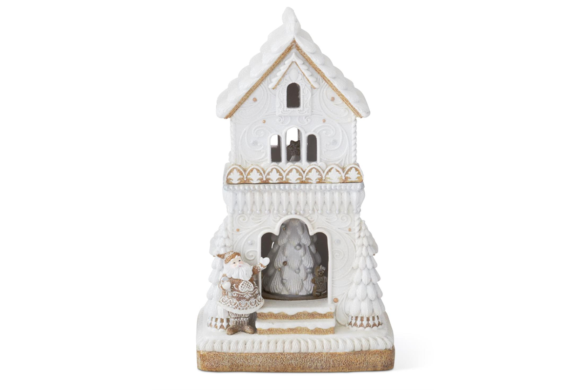 16" White Glitter LED Gingerbread House