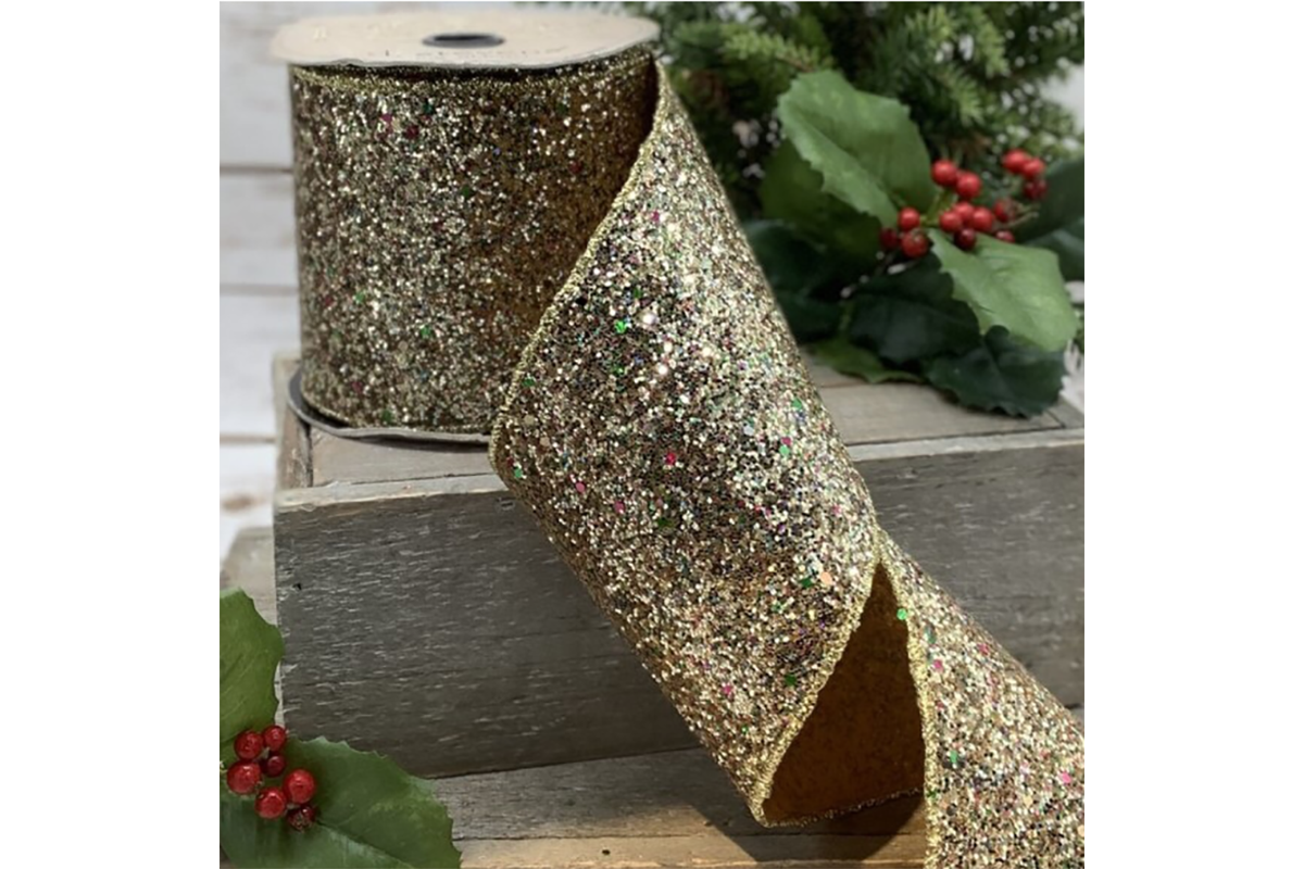 Crystal Trim Gold 1.5"x5yd Wired Ribbon