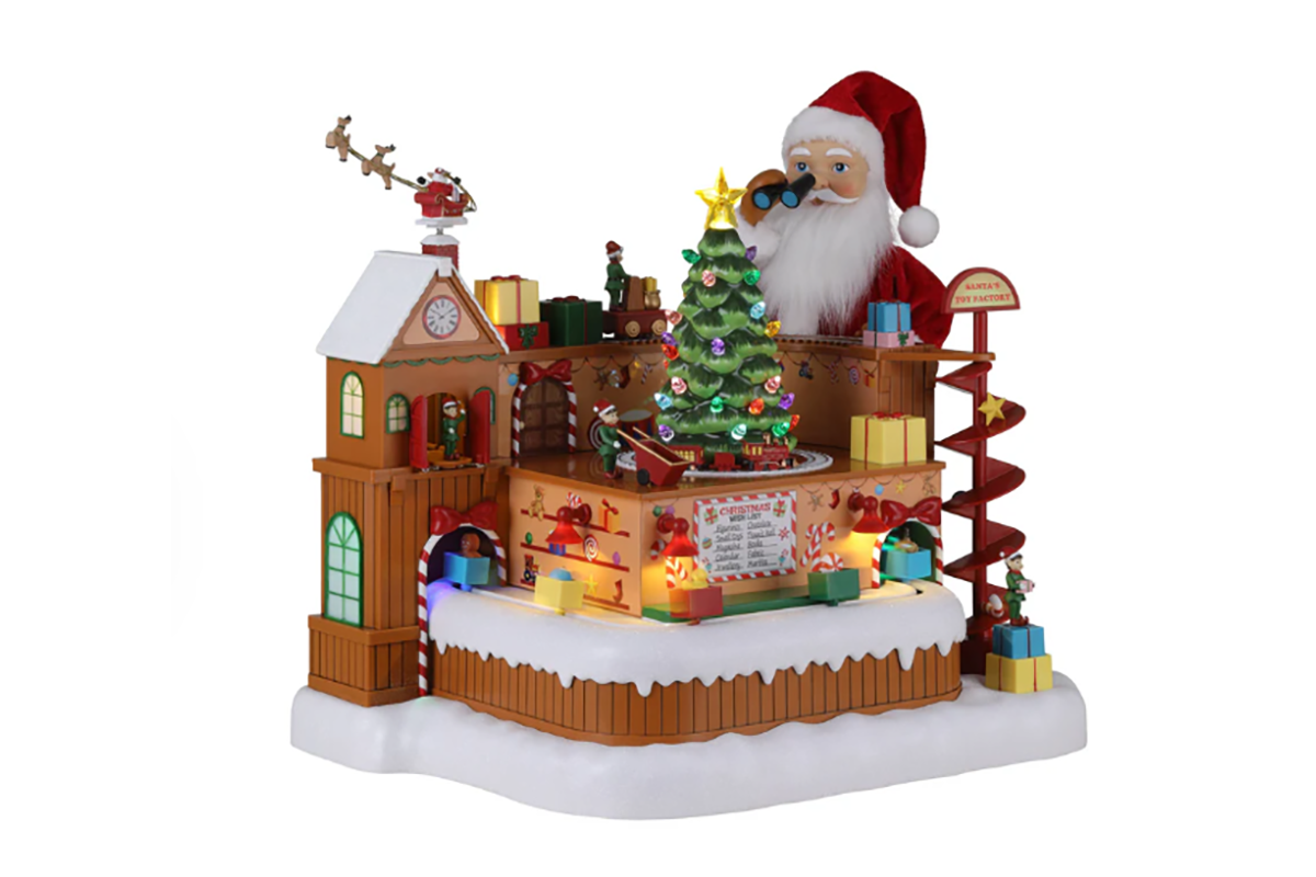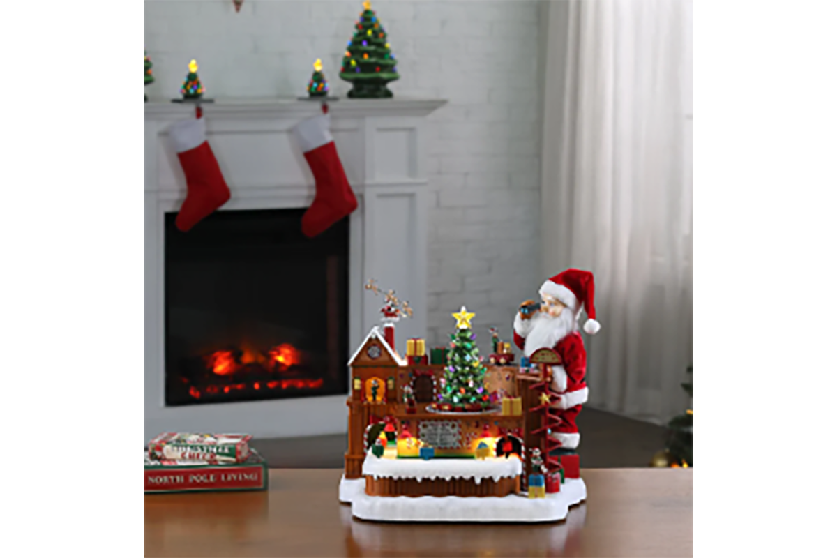 15" Lighted Ornament Stack Featuring Santa and Christmas Fireplace