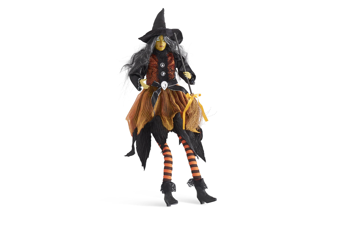 28" Sitting Sybil Witch w/Broom & Orange Dress