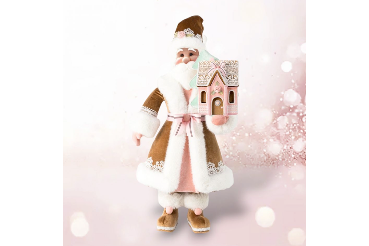 48" Pink Gingerbread Santa with house