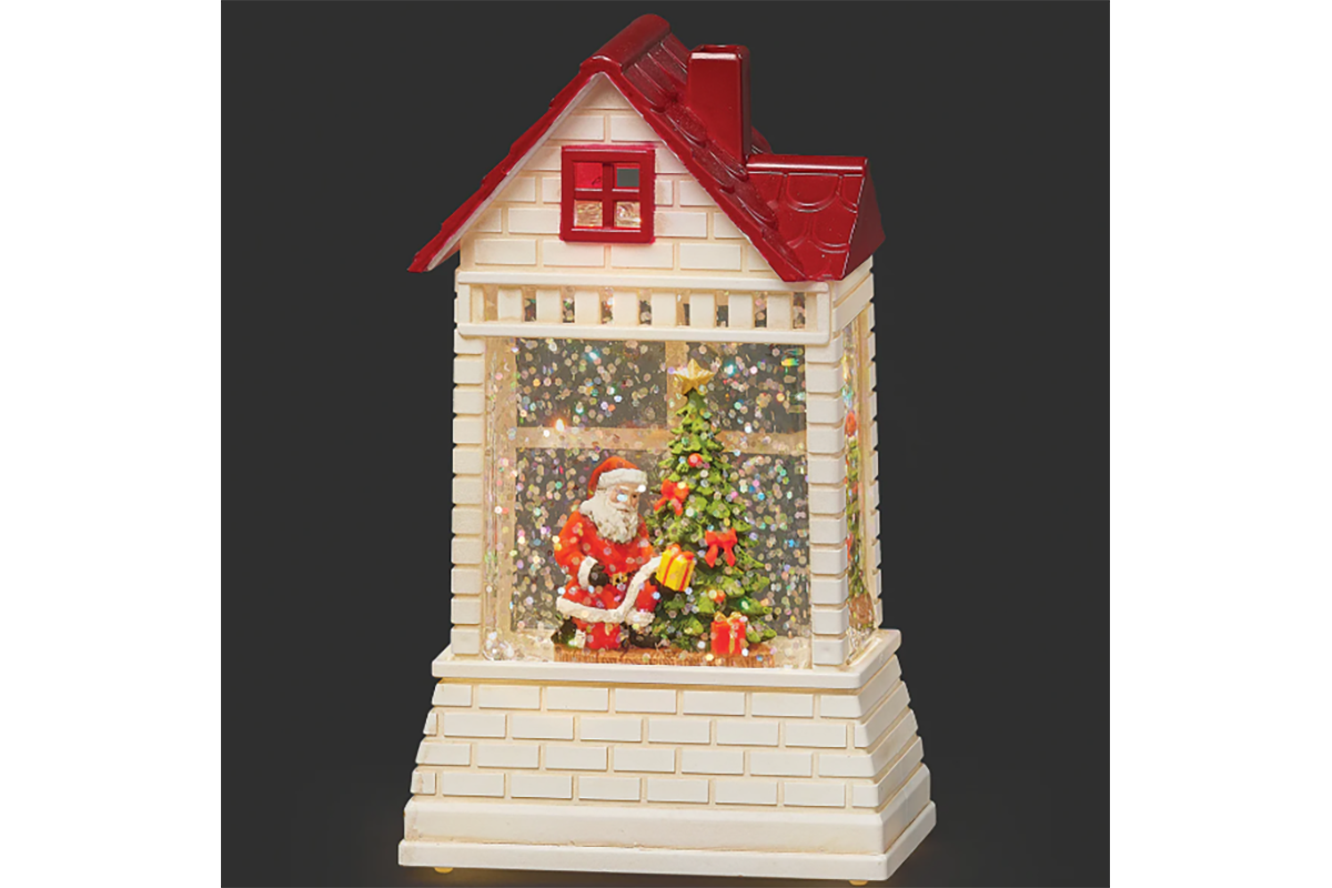 Add holiday cheer with this enchanting lighted decoration featuring Santa nestled inside a festive house, beautifully illuminated with swirling shimmer from the Shimmering Merry Lites collection. Its compact size makes it perfect for mantels, desktops, or shelves, bringing a warm and magical glow to any space during the holiday season.