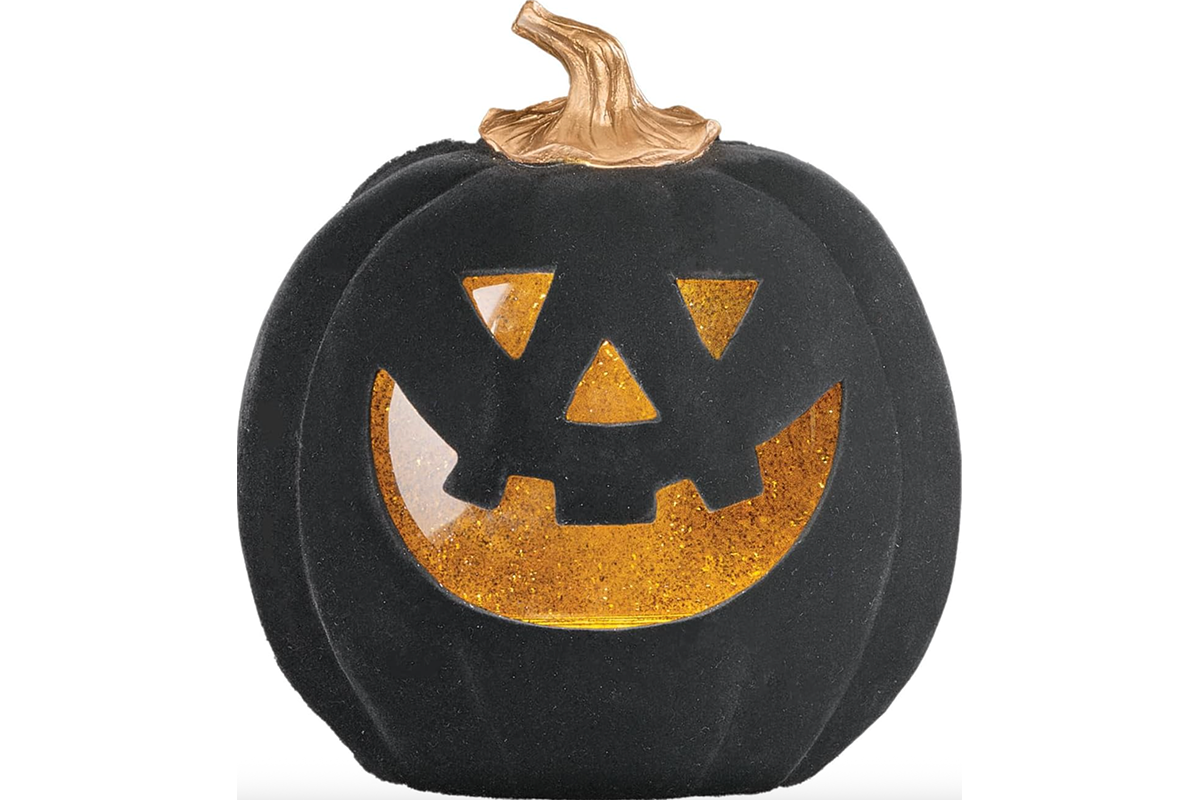 - Soft Ambient Lighting: Integrated LED light gently illuminates the swirling glitter and the unique black flocked texture of the pumpkin.