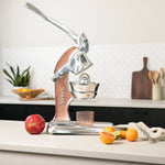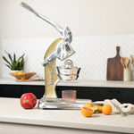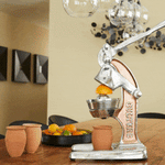 You’re going to want to clear your kitchen or bar countertop for this beauty. This large hand juicer is popular in markets all over Mexico. It extracts every drop of juice, while the strainer catches seeds and pulp. This simple, sturdy beauty will be the source of delicious juices for drinking, cooking, and cocktails for decades. The large juicer is perfect for grapefruits, naval oranges, and other large citrus fruits. Our juicer’s “jaws” are easy on the hands, and hard on your fruit. For small citrus fruits, check out our Small Citrus Juicer. Take a walk in any market in Mexico and you’ll see artisans making juices everywhere. Electric juicers are fine, but this is what your friends and family will rave about.