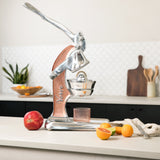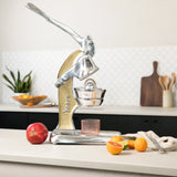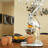 All of our juicers are handmade with 100% recycled aluminum. Artisans make each and every juicer by hand. The juicers are individually cast in sand, grinded by hand, and then hand-polished by expert craftsmen.