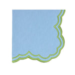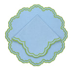 Set a beautiful table with blue napkins elevated with green wavy, scalloped embroidery. This color combination is perfect for spring and summertime entertaining.