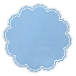 Brighten your table with our delightful light blue Bettina Napkins, beautifully adorned with crisp white wavy scalloped embroidery. This timeless design brings charm to every dining occasion.
