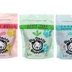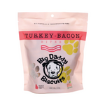 Let’s face it: your dog loves bacon as much as you do. You’ll never have to sneak your pup snacks under the table again with our all-natural turkey bacon dog biscuits. Our bacon biscuits are made with certified organic whole wheat flour, all-natural turkey bacon, and local eggs straight from the farm. Try this all-natural, healthy alternative to letting your dog eat people food! 8 oz