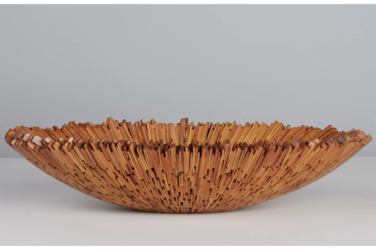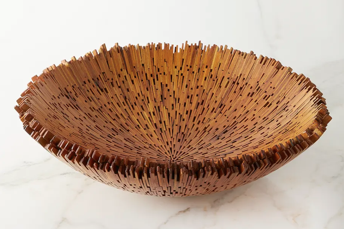 Made from hundreds of small pieces of wood intricately and precisely fitted together, this sculptural vessel from Lily Juliet is sure to be an alluring centerpiece for any tablescape or the perfect bread basket for elevating your kitchen counter. Handcrafted out of mahogany by gifted Filipino artisans using wood that is salvaged from fallen down trees, each vessel is designed to catch your eye, stir your curiosity, and create conversation.