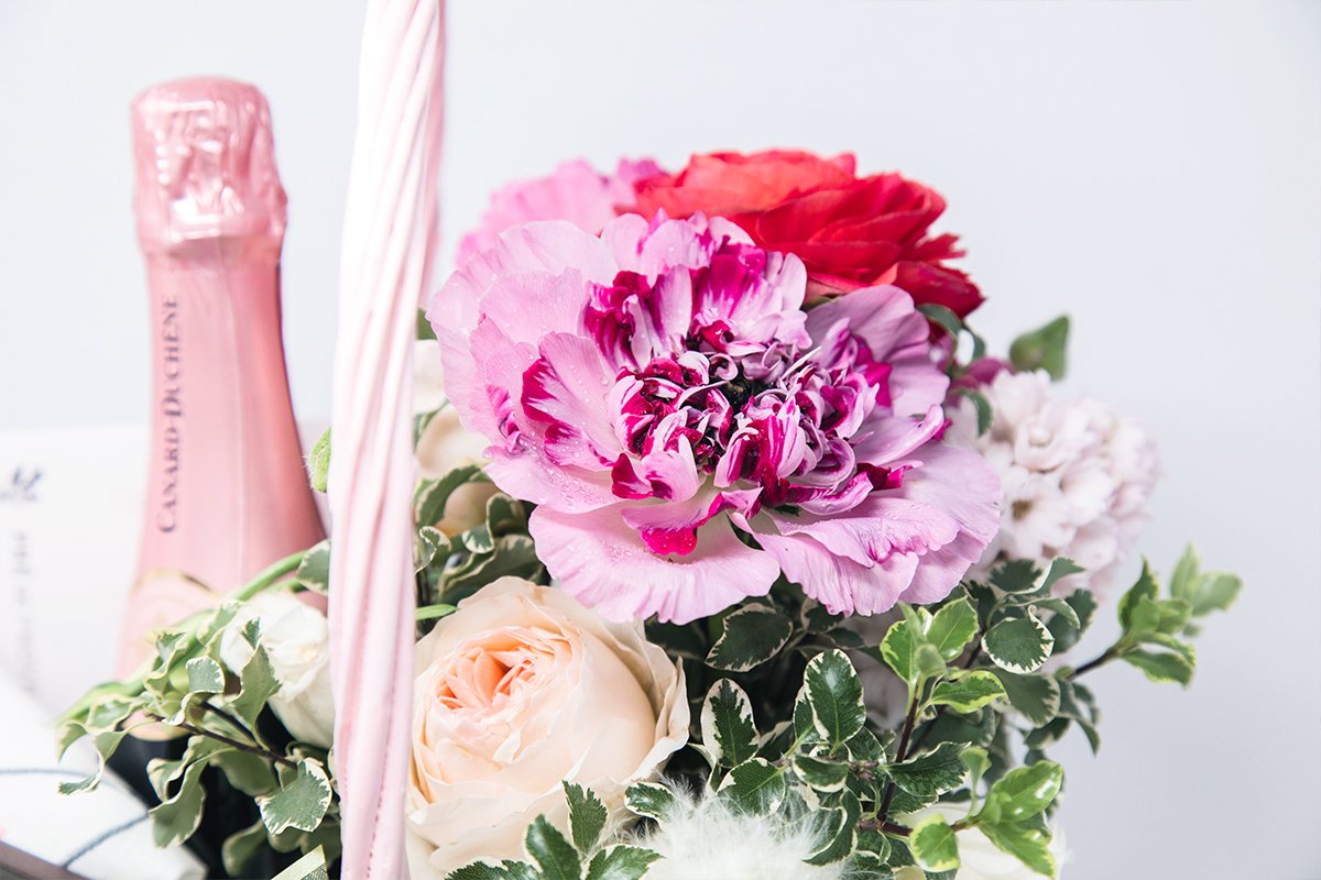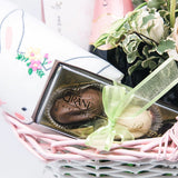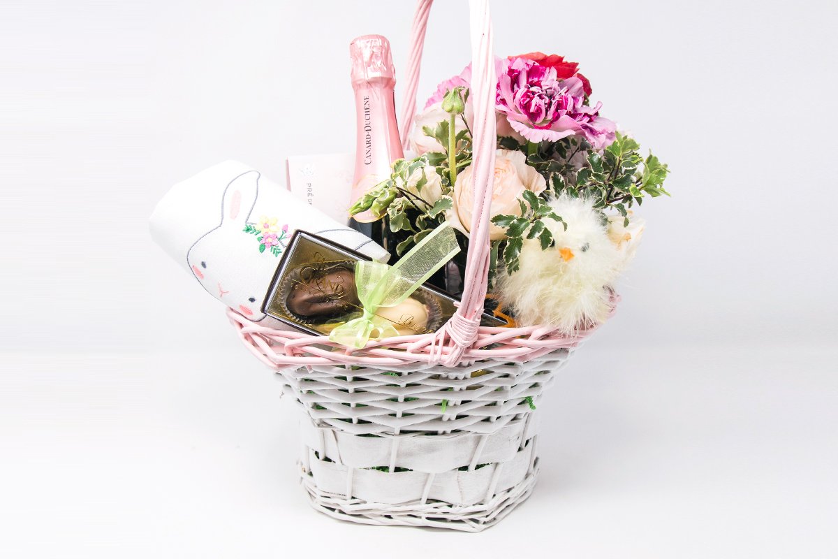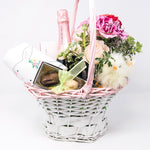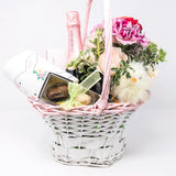 Beautiful Easter basket for that special lady in your life or as a great hostess gift. The basket includes flowers, wine, chocolates and more!