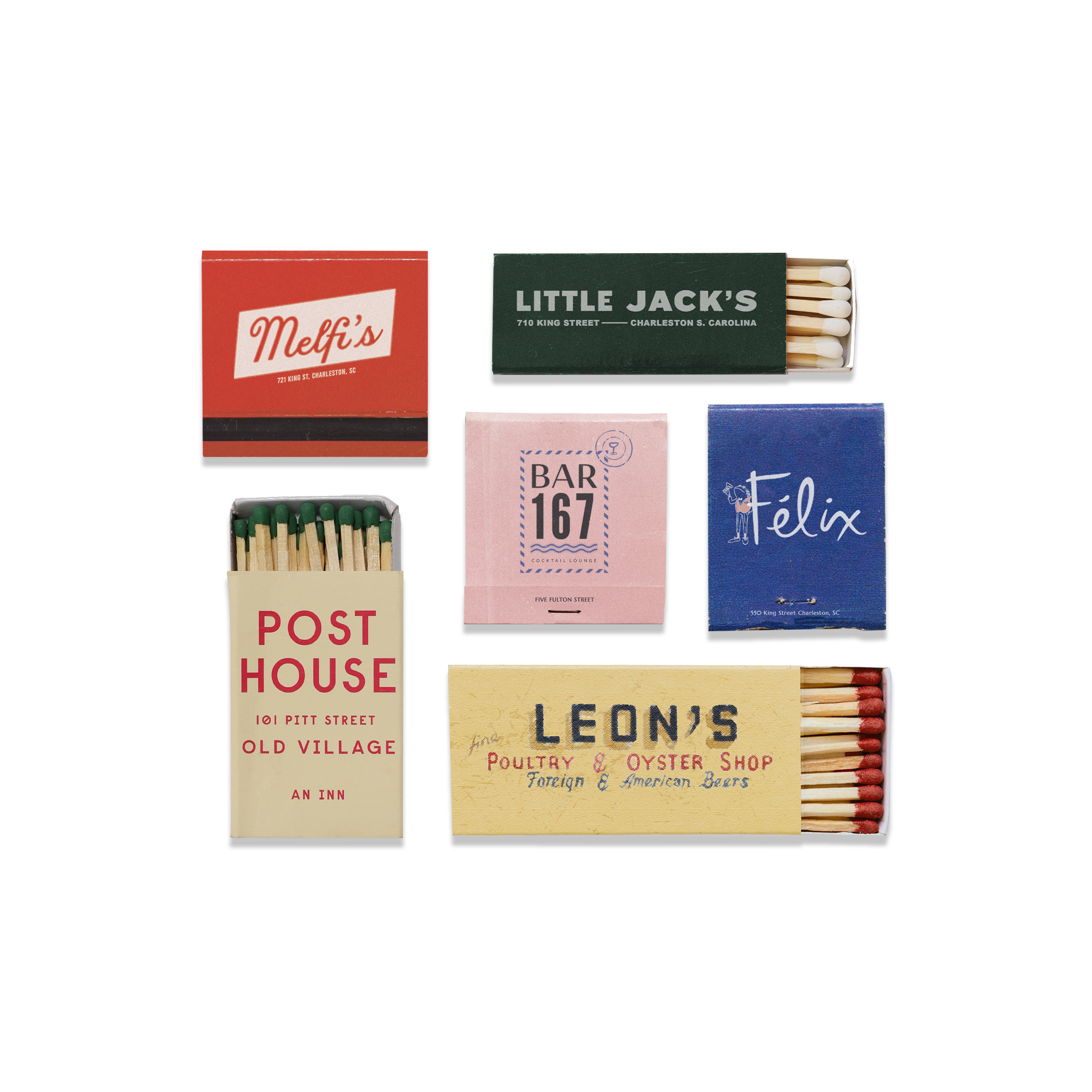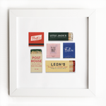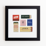 The Charleston Collage print showcases an iconic matchbook design.