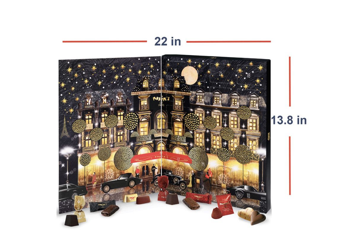 Discover the magic of Paris at the Rue Royale Christmas market. Maxim's de Paris presents 24 exquisite treats like giandujas, hazelnut chocolates, and crispy chocolate-covered crepes. Savor a new delight daily as you countdown to Christmas morning.