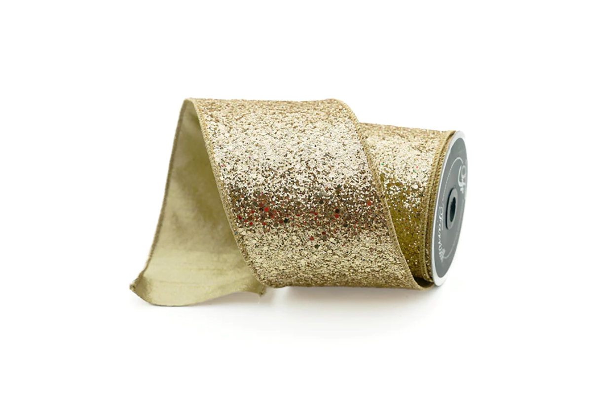 Chunky Glitter Gold 4"x10yd Wired Ribbon