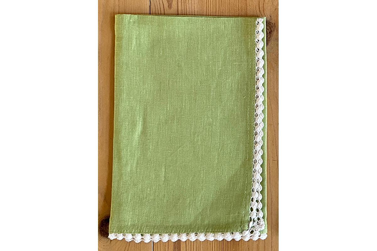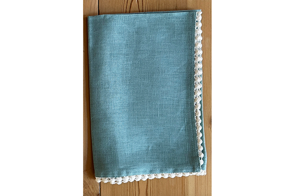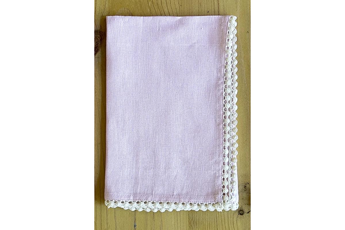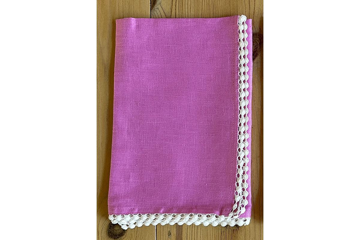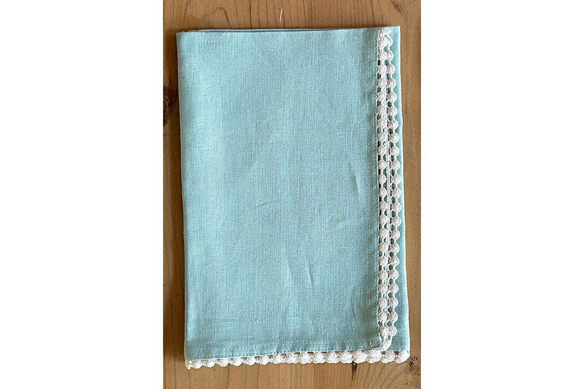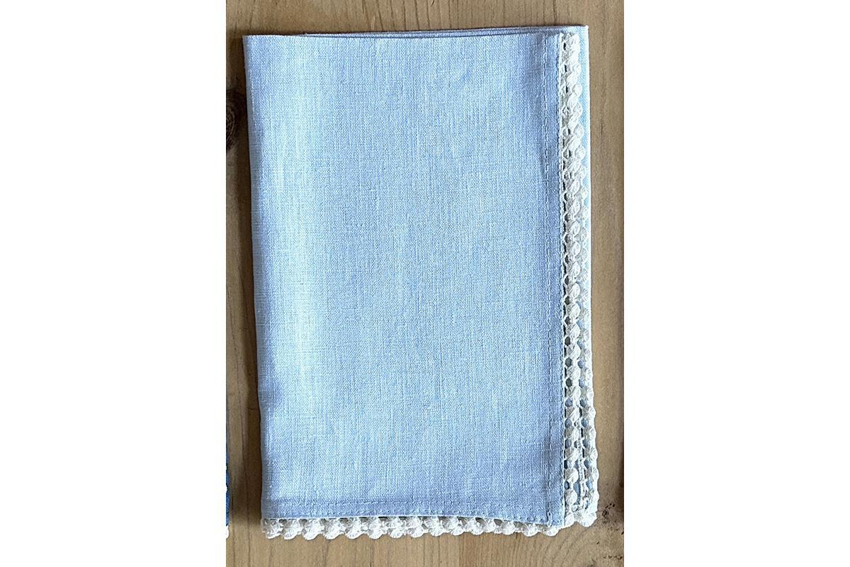 OUR EXCLUSIVE LINEN NAPKINS MEASURE 20 INCHES AND HAVE A CHARMING CROCHET EDGE. MACHINE WASH DELICATE...AIR DRY.