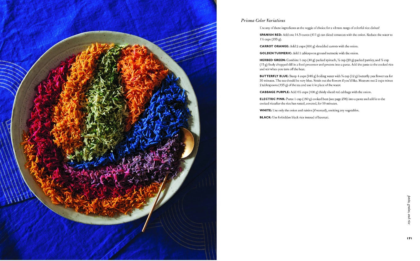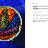 The book is a 9" x 11" x 1" with a cardboard bound book cover and glossy pages of photography featuring process and finished dishes, all artfully captured at Loria's home in Los Angeles.
