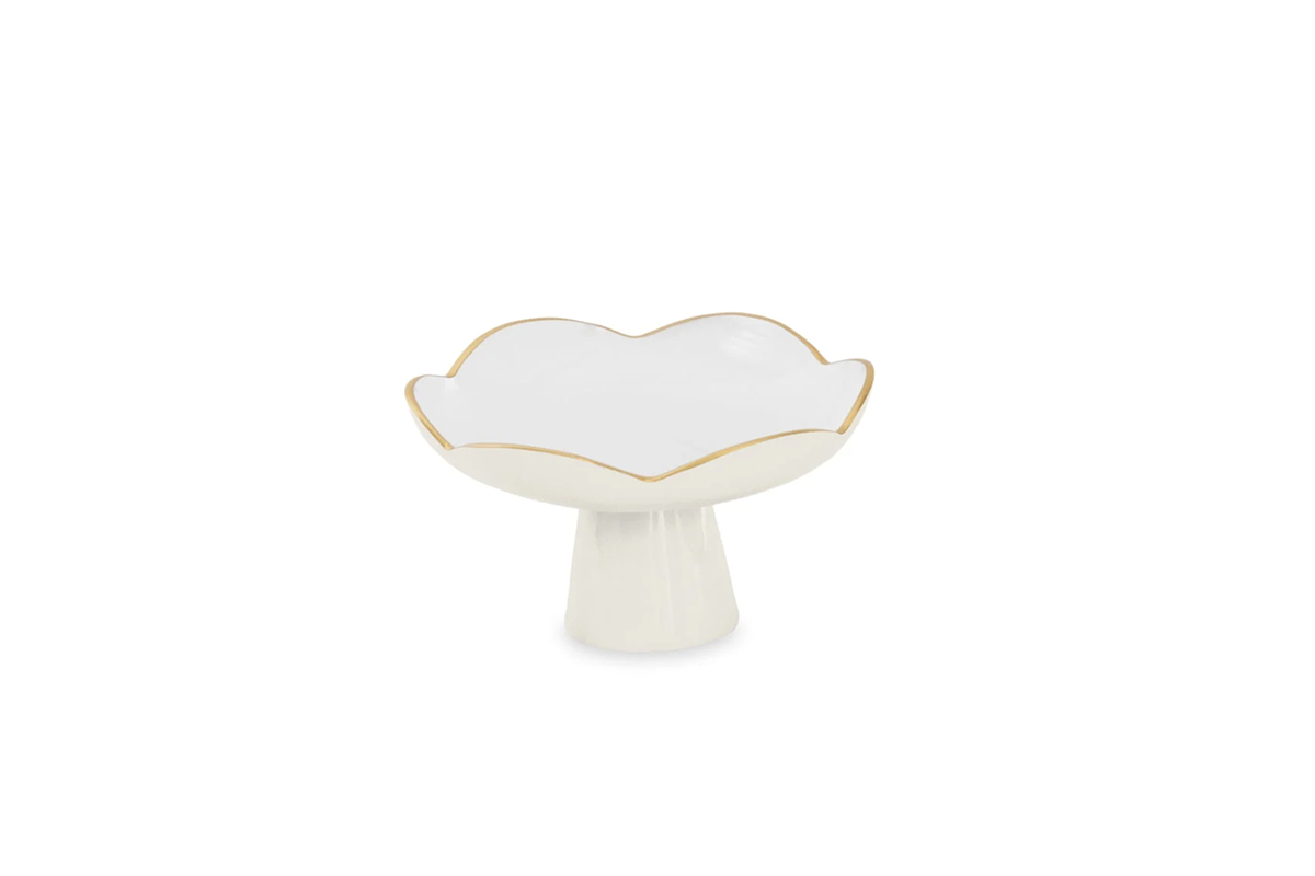 Present mini desserts, pastries, or fruit beautifully with the ENCANTO Amelia Small Pedestal in Cameillia and White. The blush pink enamel, gold-tone details, and classic fluting bring romance and charm to any setting.