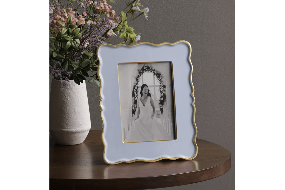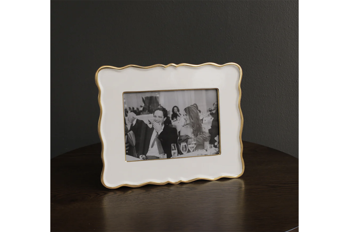 Beatriz Ball's FRAME Encanto Rea 5x7 is strikingly presented in colorfully enameled metal rimmed in gold. With an enchantingly tailored shape, the frame is ideal for displaying your favorite 5x7 photo in ENCANTO style. Of heirloom quality, this frame may be displayed vertically or horizontally, and makes a perfect gift for any occasion. This handsome enameled frame will add a distinctive decorative touch to any room and will be cherished for years to come.