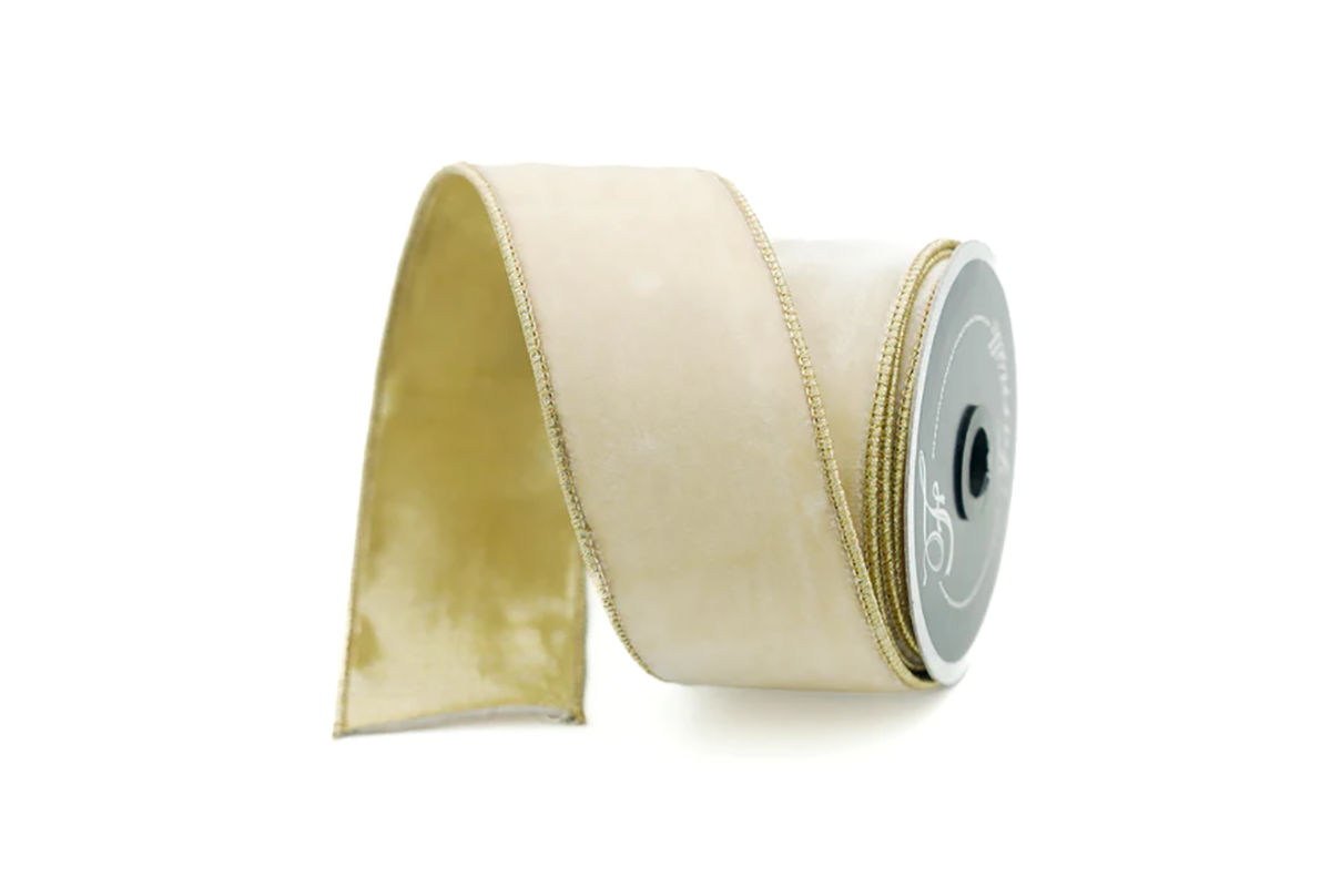 Flashy Velvet Cream & Gold 4"x10yd Wired Ribbon
