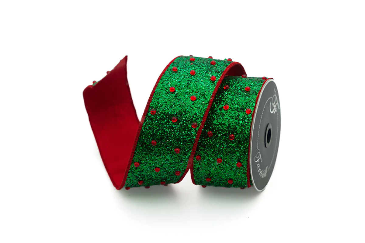 Glitter Ornaments Red & Green 4"x10yd Wired Ribbon