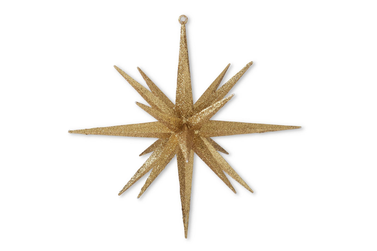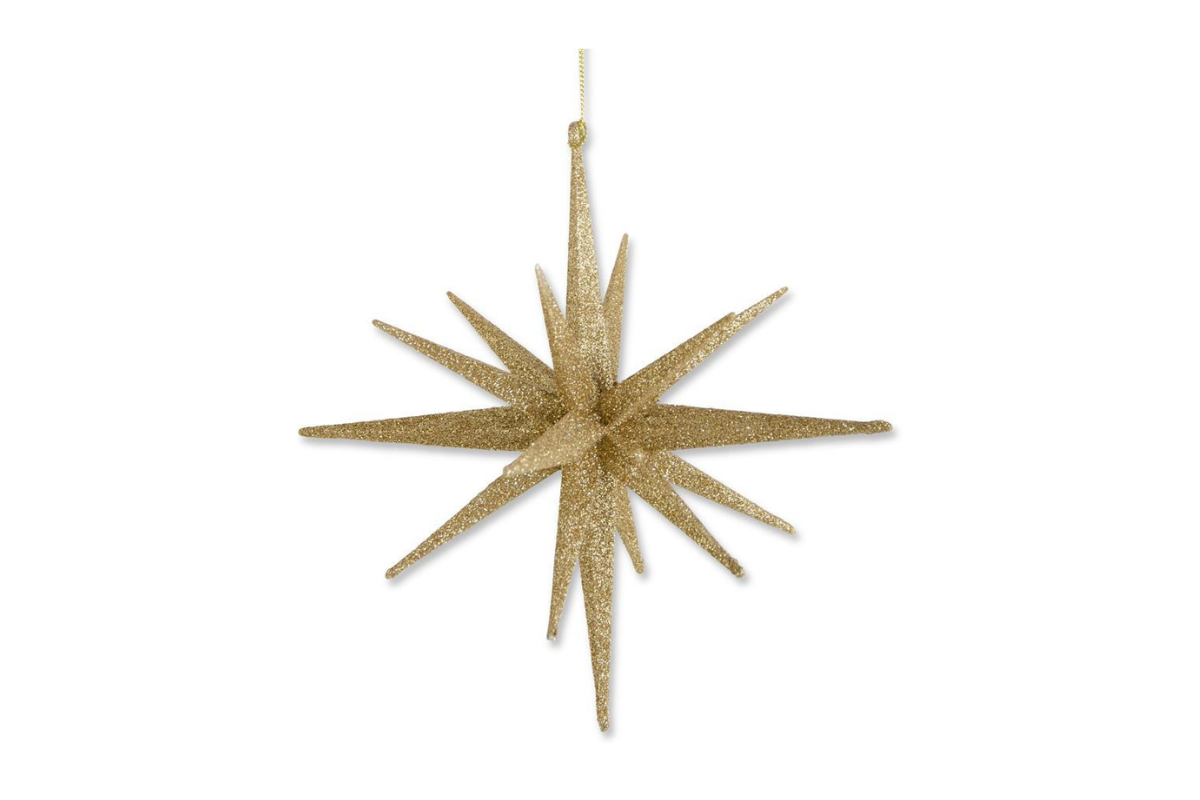 11" Multi-point Star Ornament - Available in Champagne and Gold. 11H x 11W x 11D. Plastic