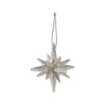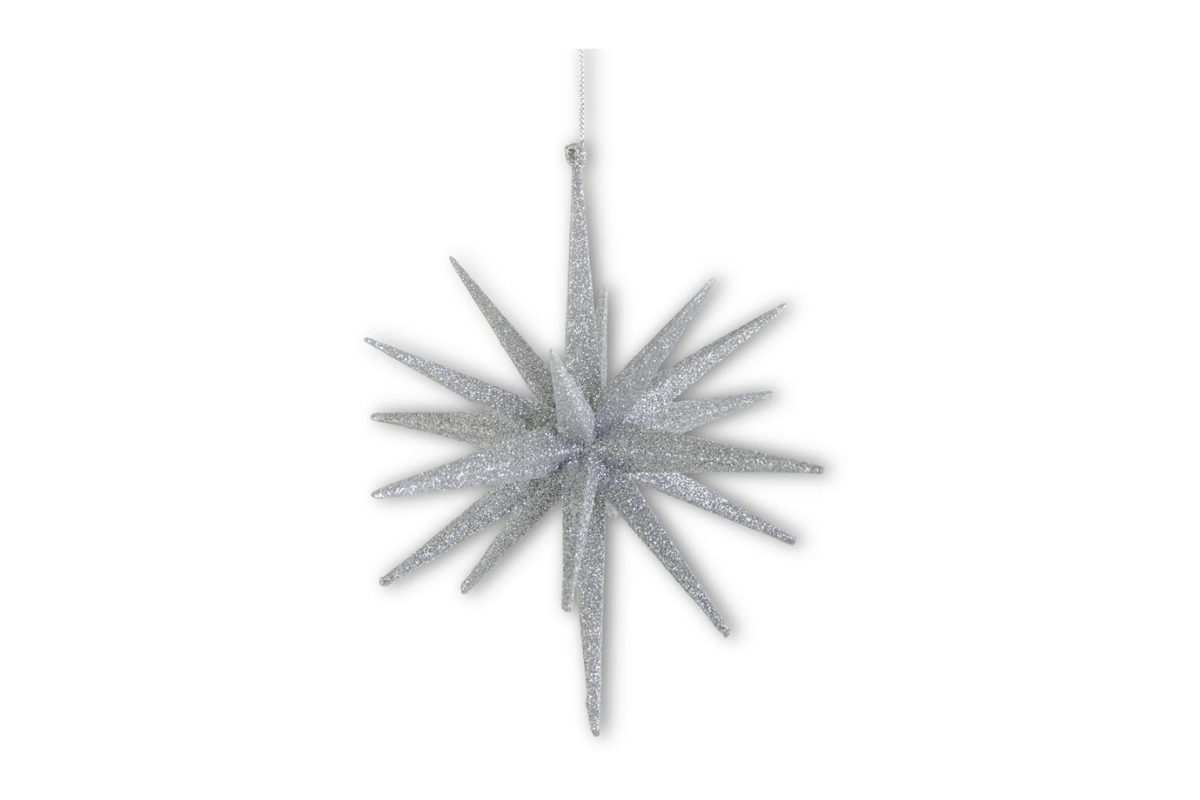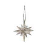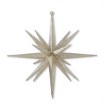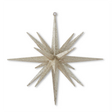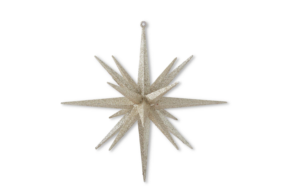 8" 18-Point Star Ornament - Available in Champagne, White, Gold and Silver. 8H x 7.25W x 7.25D. Plastic