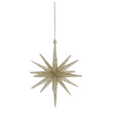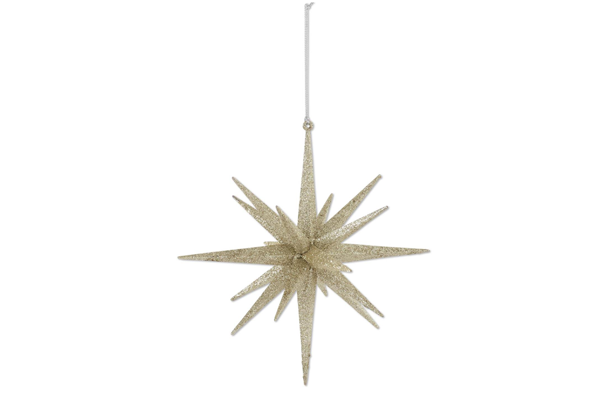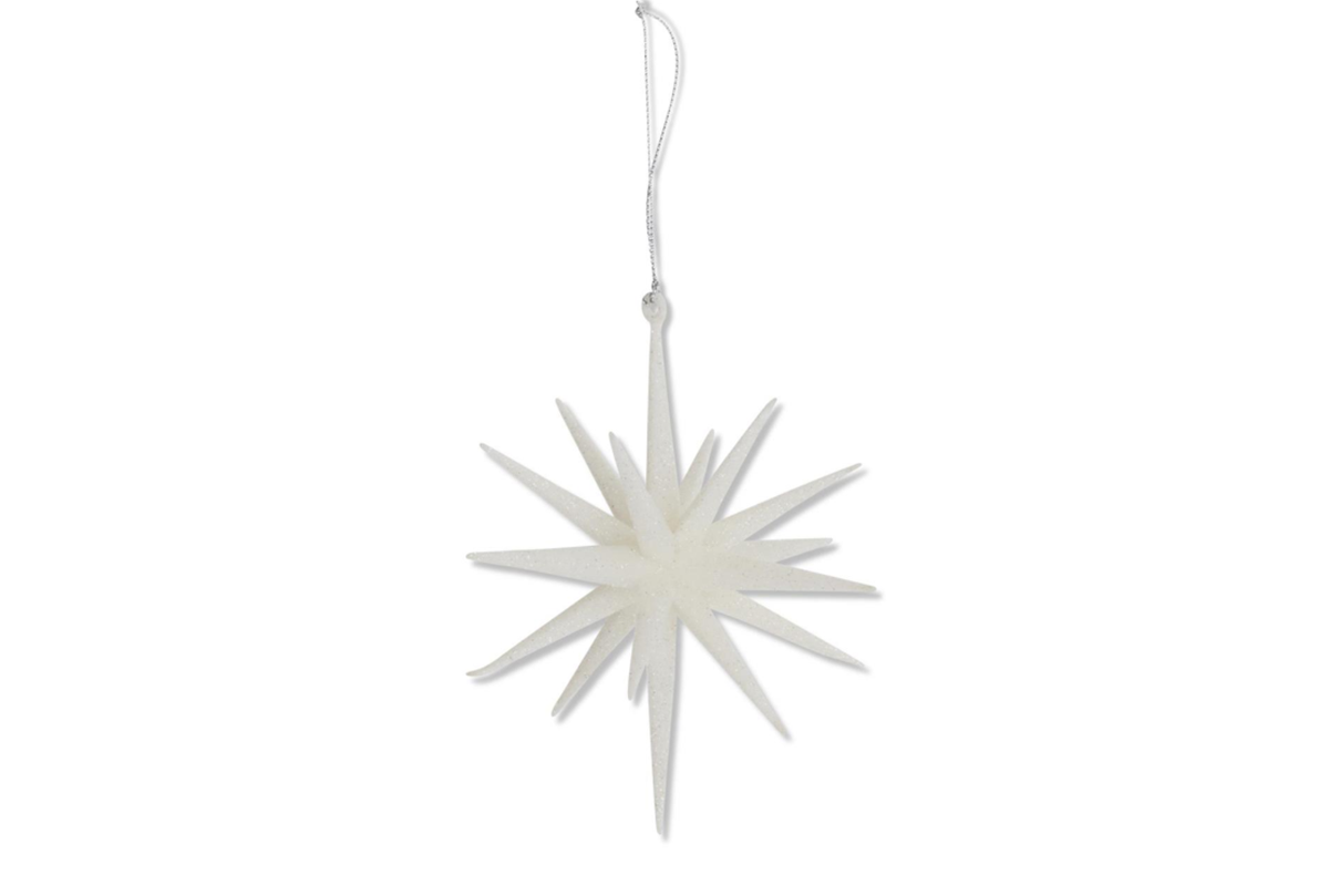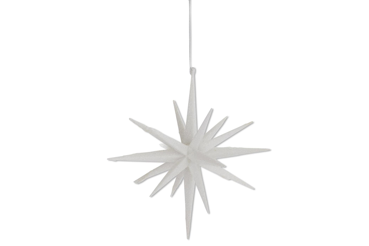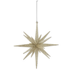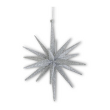 6" 18-Point Star Ornament - Available in Champagne, White, Gold and Silver. 6H x 5W x 5D. Plastic