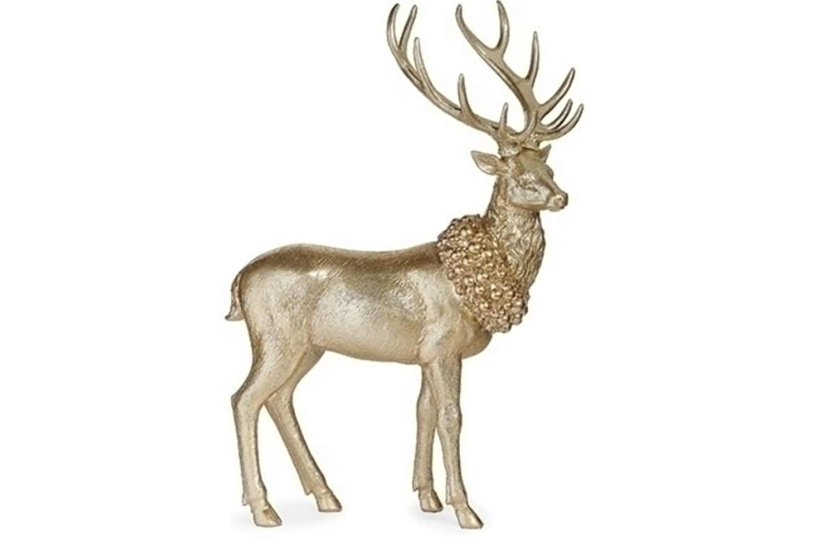 24"H GOLD GLITTER DEER WREATH AROUND NECK. RESIN. 24.75"H X 17"L