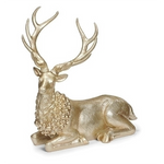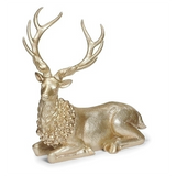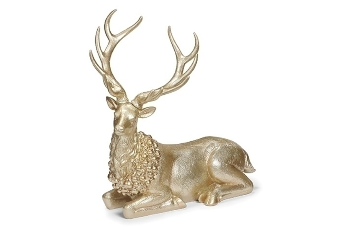 17"H GOLD GLITTER DEER LAYING DOWN WREATH AROUND NECK. RESIN. 17.25"H X 16"l
