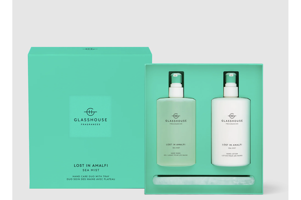 Contains: 1 x 450mL Hand Lotion, 1 x 450mL Hand Wash, 1 x Bespoke Resin Tray.