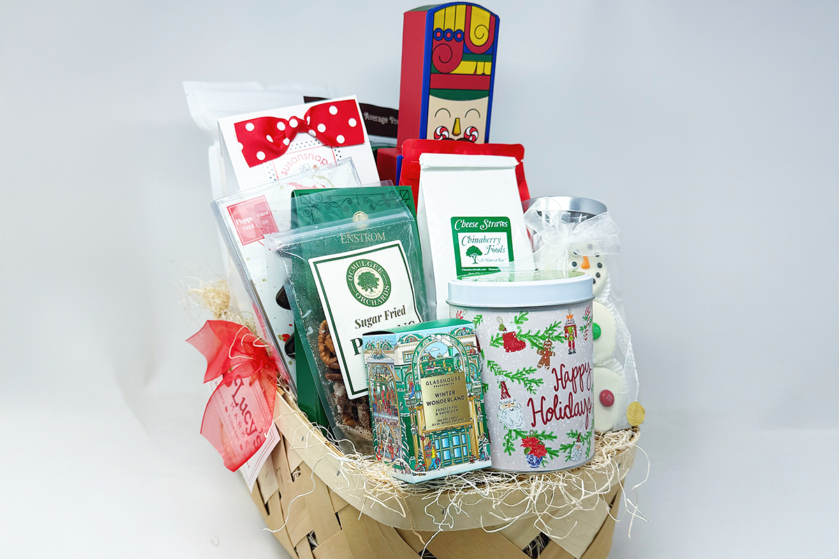 Spread holiday cheer throughout your office with this basket filled with delicious, savory, and sweet treats for everyone to enjoy!
