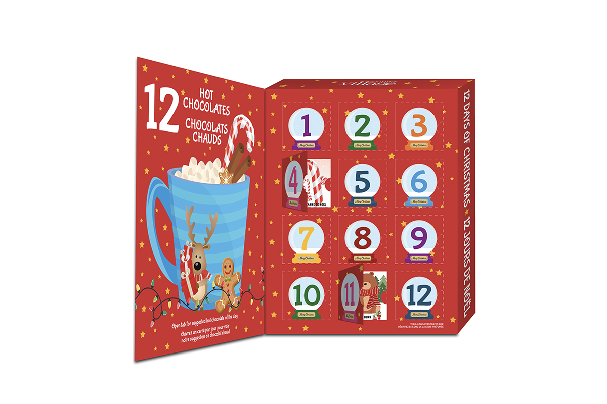 Our beautifully decorated advent calendar comes filled with 12 single serve hot chocolates minis, with a new seasonal selection of Festive Hot Chocolate to discover inside.
