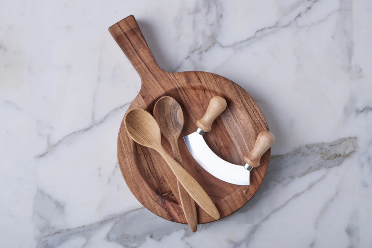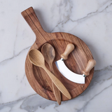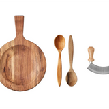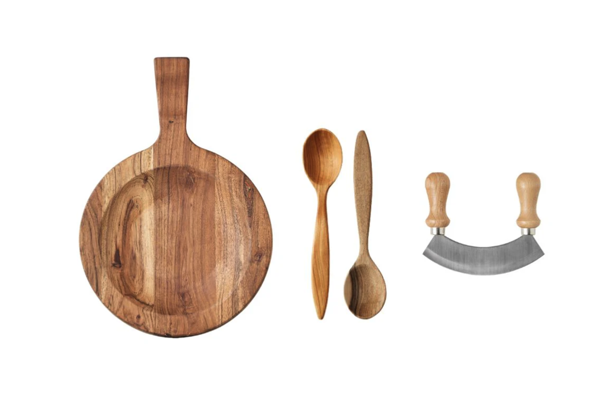 Crafted from premium acacia wood, this instant heirloom evokes the charm and practicality of a European kitchen. Crafted from durable hardwood and finished with organic oil, the board offers exceptional versatility. One side features a flat surface, ideal for chopping or slicing, while the other is scooped for all-in-one serving or mincing. Its compact size is perfect for everyday use, whether you're prepping ingredients, assembling a salad, or tossing pasta.
