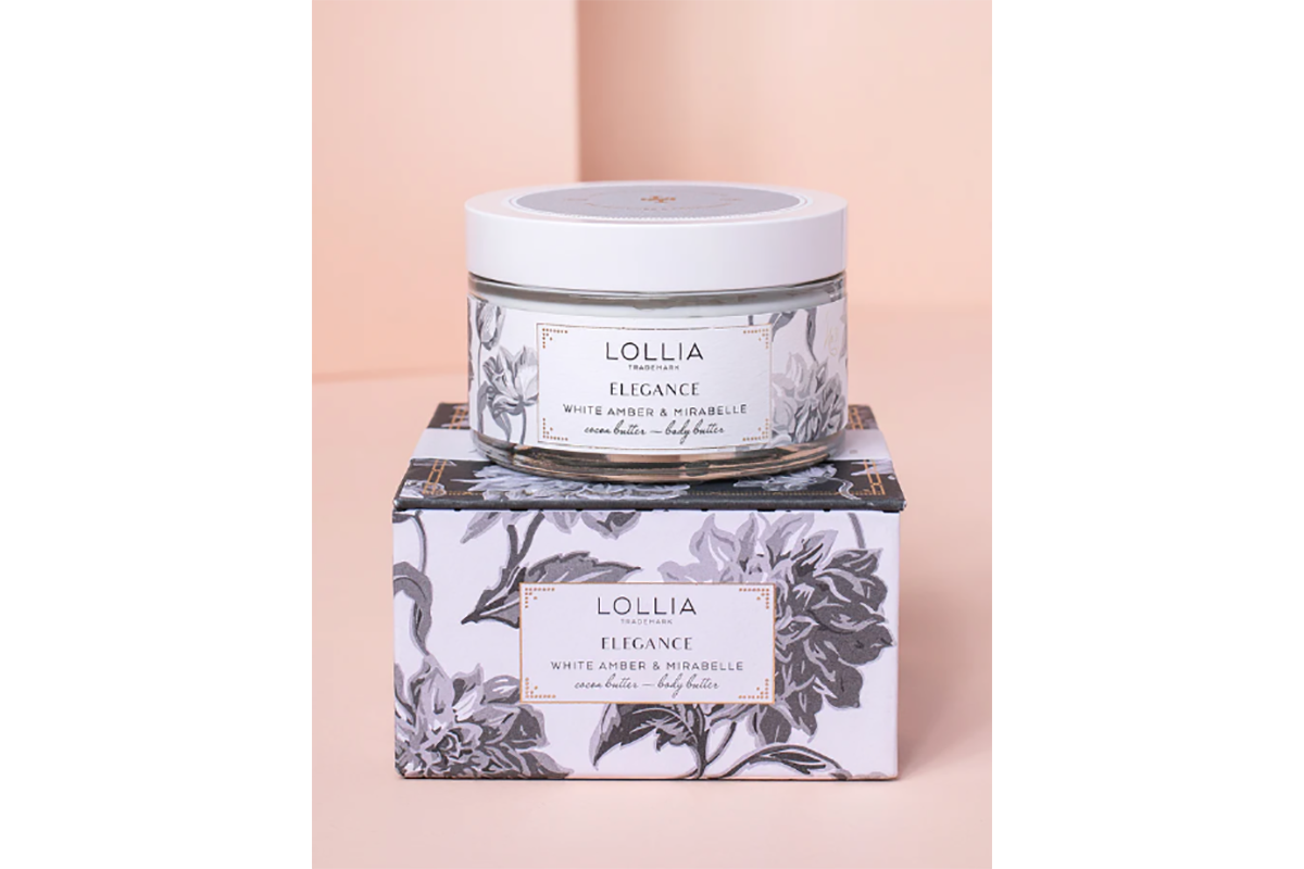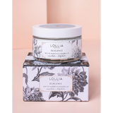 Body Butter: Discover moisture-rich bliss in Lollia’s Elegance Body Butter. Ultra-nourishing and richly comforting, Aloe and Shea Butter envelop your body in lush hydration as Cocoa Butter and Avocado Oil restore radiance. Delicate floral infusions of White Amber & Mirabelle leave skin delightfully scented.