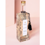 Bespoke black-and-white florals peek through this sophisticated and stylish bottle’s radiant glass. Adorned with silky black tassels and a touch of gold, this elegant piece is sure to be a tub-side treasure long after the bubbles float away. A classically iconic bottle steals the spotlight on your vanity and at any gift-giving occasion.