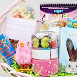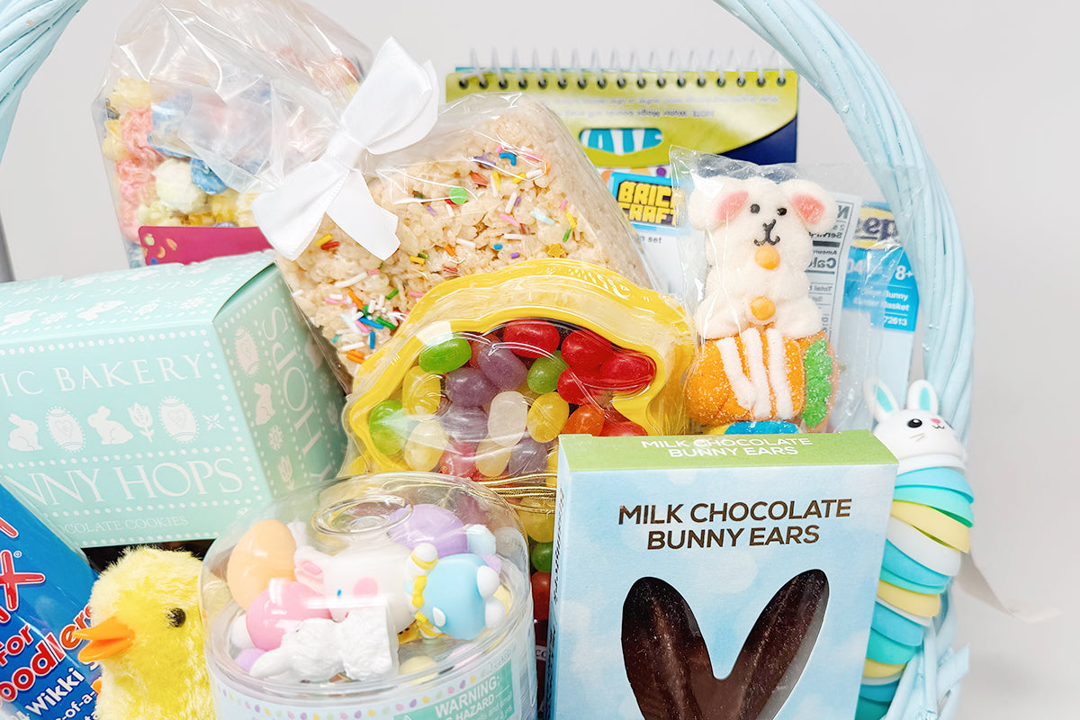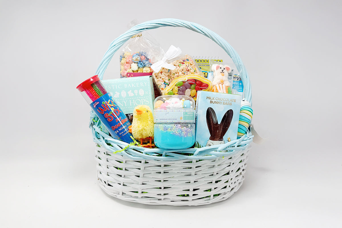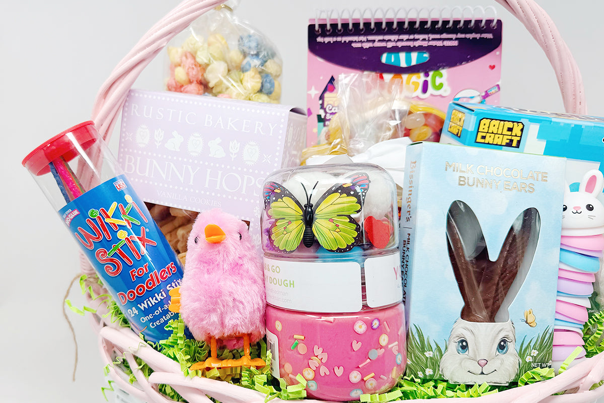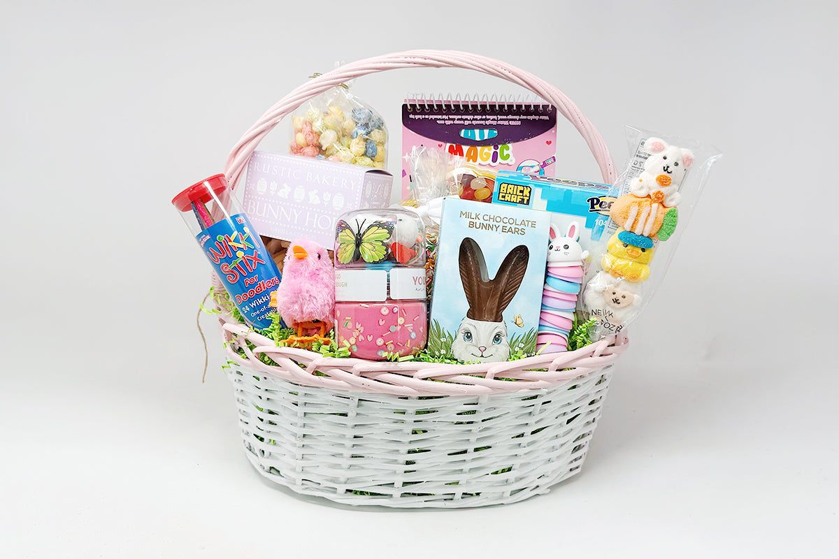 The bunny has arrived with this large Easter basket, sure to delight! The big bunny hop basket is full of fun items for kids including candy, toys, snacks and more! Can be customized for boy or girl and for any age!