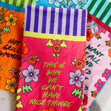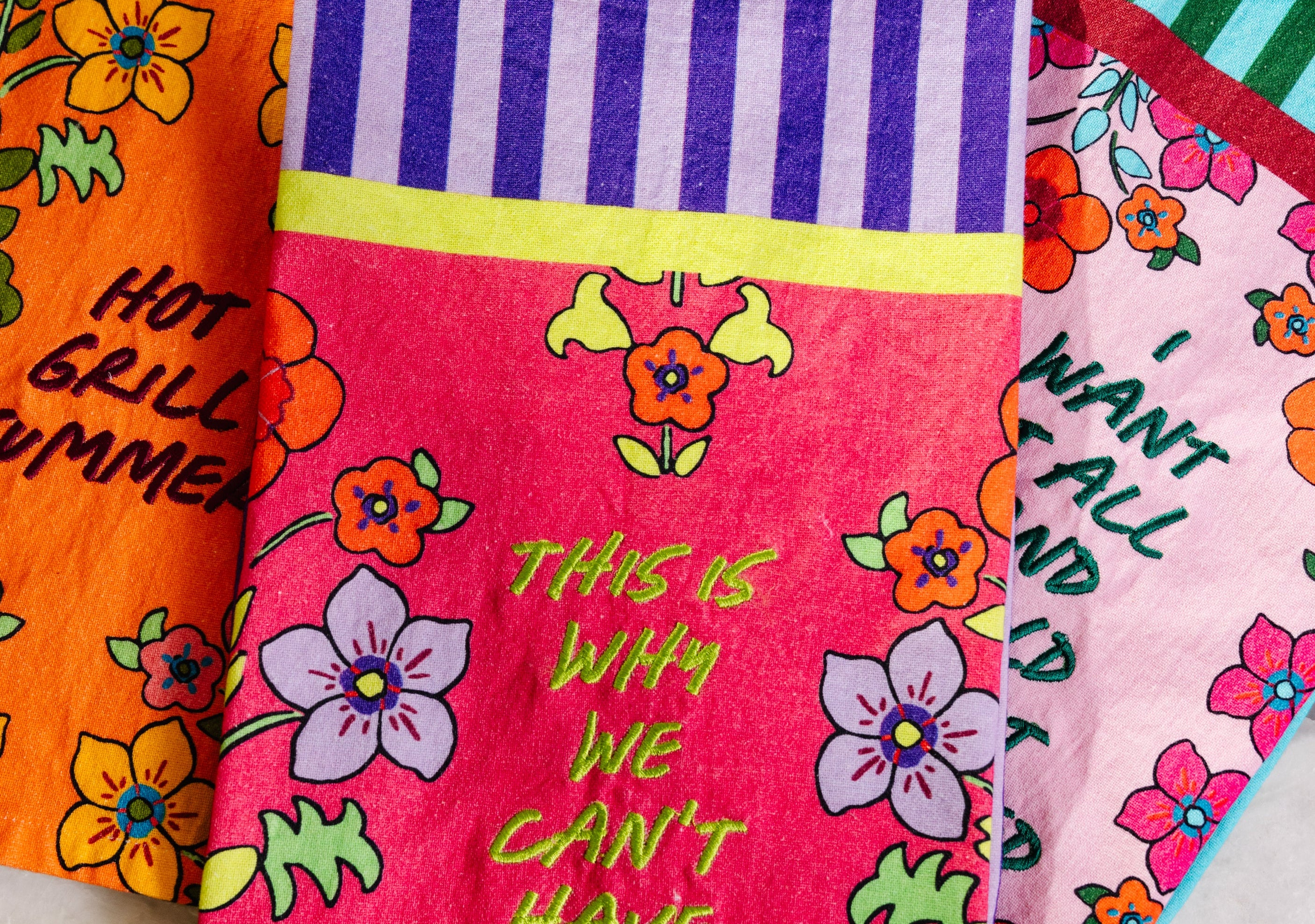 Handcrafted in India with love, each towel brings a pop of color and a dash of attitude to your kitchen.