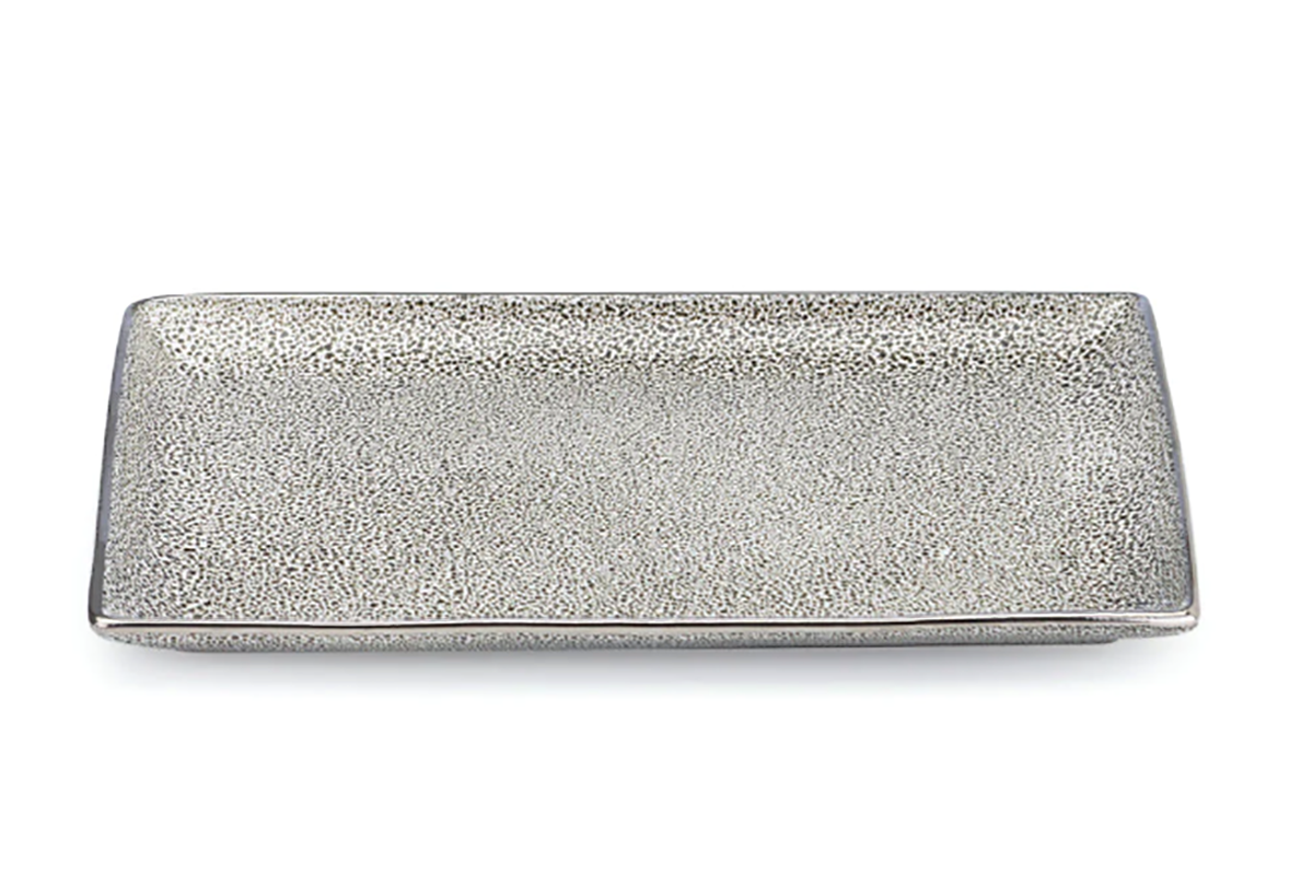 The beautifully mottled glaze combines with the platinum edge, creating function and form with a touch of bling.