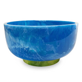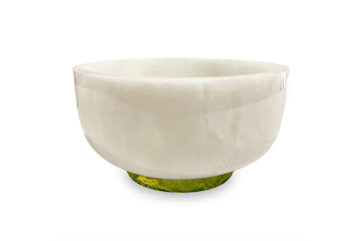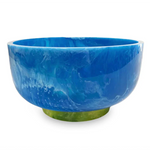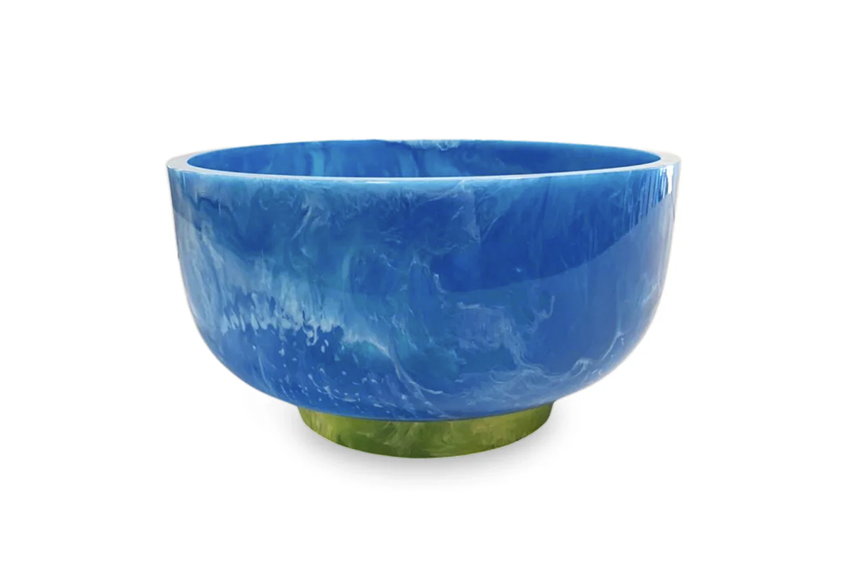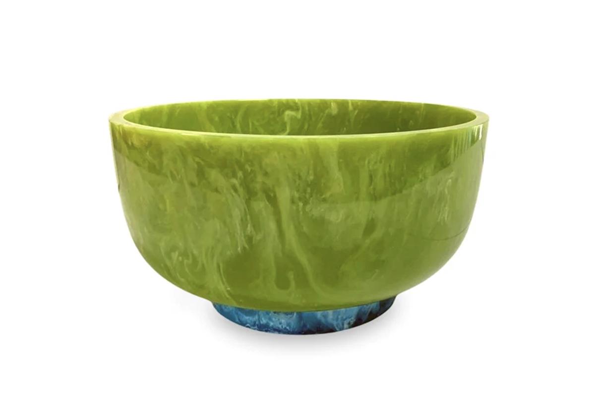 Beatriz Ball introduces large and small round bowls with contrasting bases, plus large oval bowls also with contrasting bases all in colorful translucent resin. The RESIN Rio Large Bowl with Base (White and Green) is perfect for serving or display. Pair with a smaller bowl or servers for an awesome set. Makes a great gift.