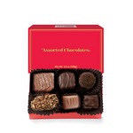 Mini Red Assortment - It’s filled with a mix of rich milk and dark chocolate that’s sure to make them smile. Approximately 6 pieces.* Milk California Brittle®, Dark Chocolate Chip Truffle, Milk Bordeaux™, Toffee-ettes®, Milk Butterscotch Square, Dark Butterchew®.