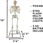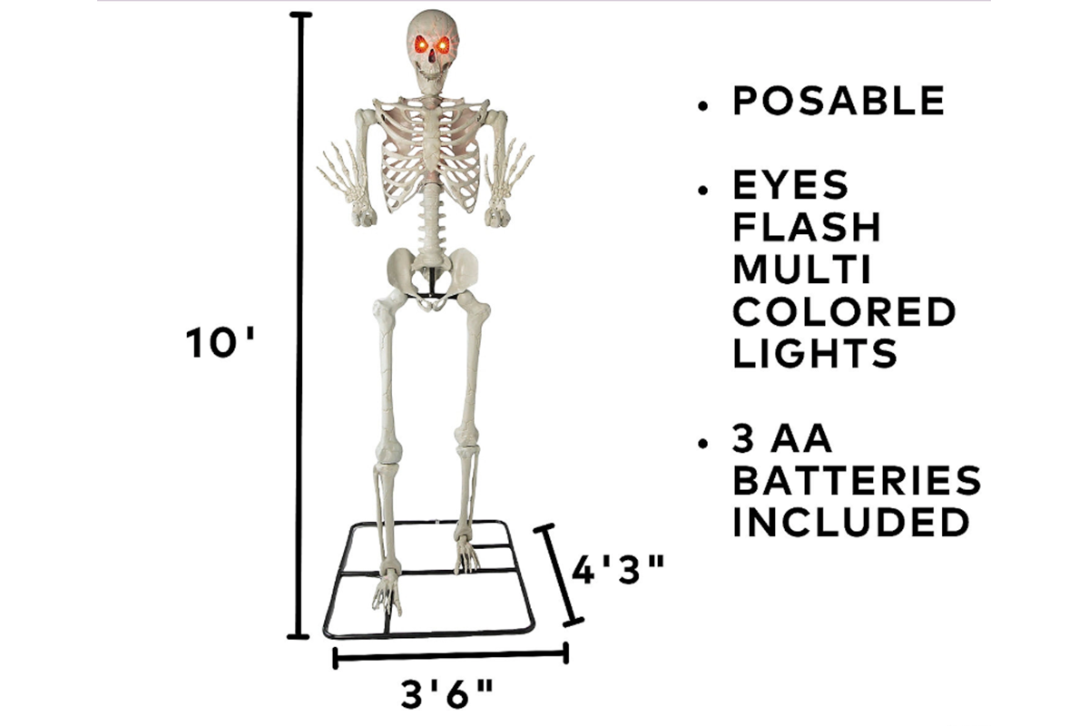 • TITAN SKELETON: Staring down from a 10-foot height with light-up eyes that change colors, this titan skeleton also features posable limbs and a malicious grin.