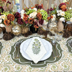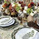 These Belle placemats provide the foundation for memorable autumn meals. The sage linen coordinates beautifully with traditional fall colors while the precise white embroidery adds sophisticated detail that guests notice and appreciate.