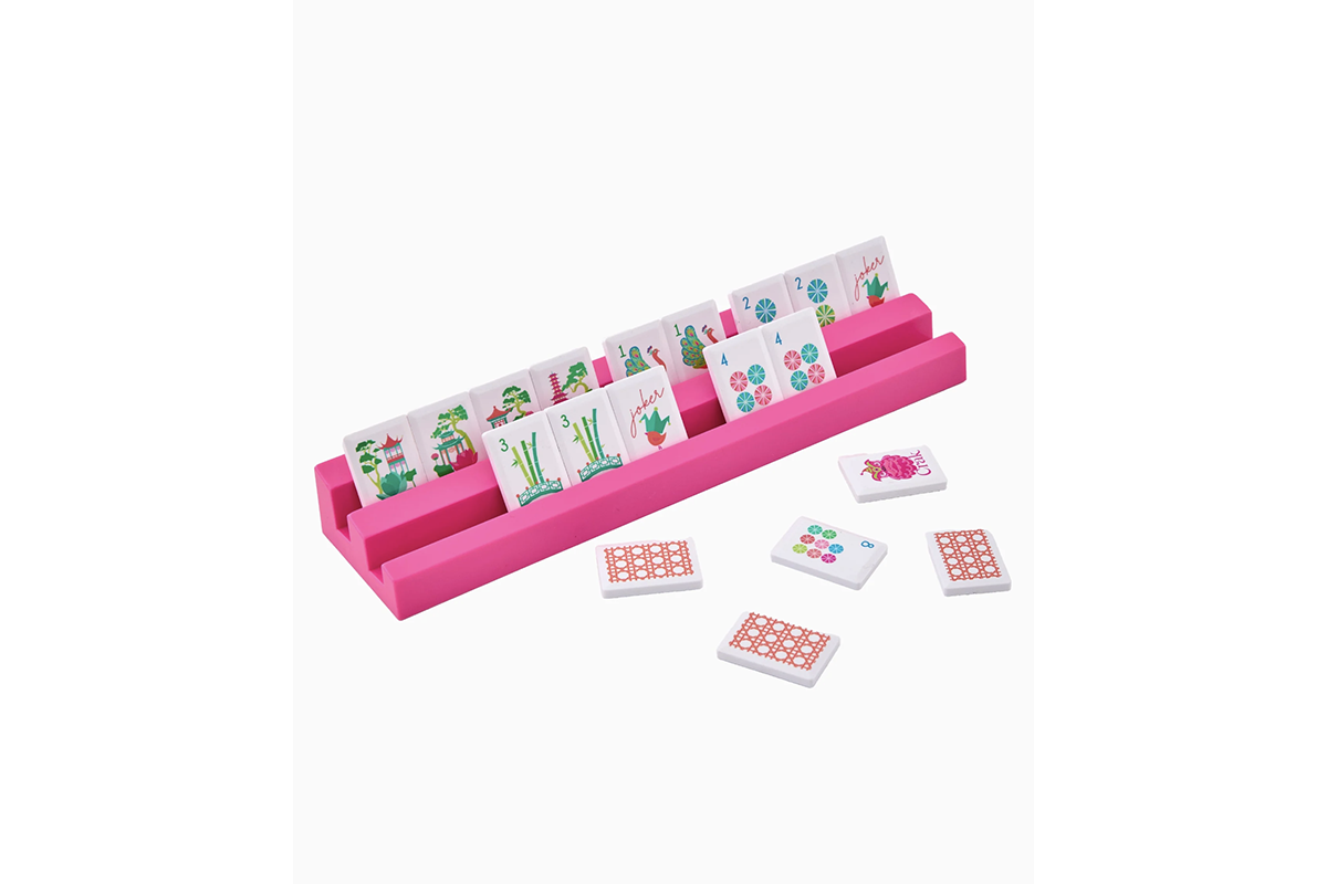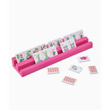 Crafted for players who love color as much as they love the game, this set features bold Sunburst tiles, bright pink plastic racks, and a sturdy, water-resistant travel bag designed to keep everything safe no matter where you go. Pair it with our water-resistant International Mahjong Card or Aquajong for endless on-the-go play.
