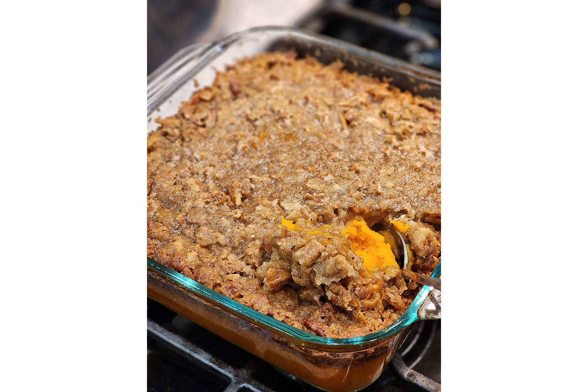 Gluten free sweet potato casserole by Lamb's Bakery.