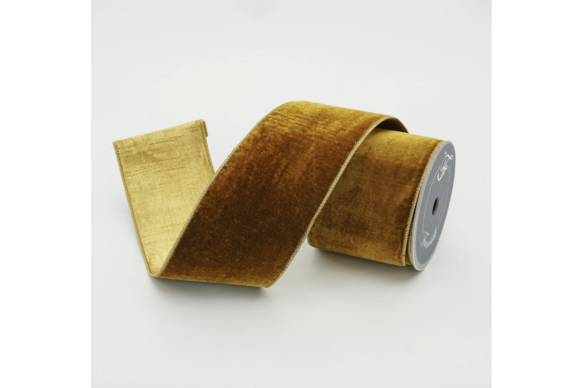 Velvet Antique Gold 4"x10yd Wired Ribbon