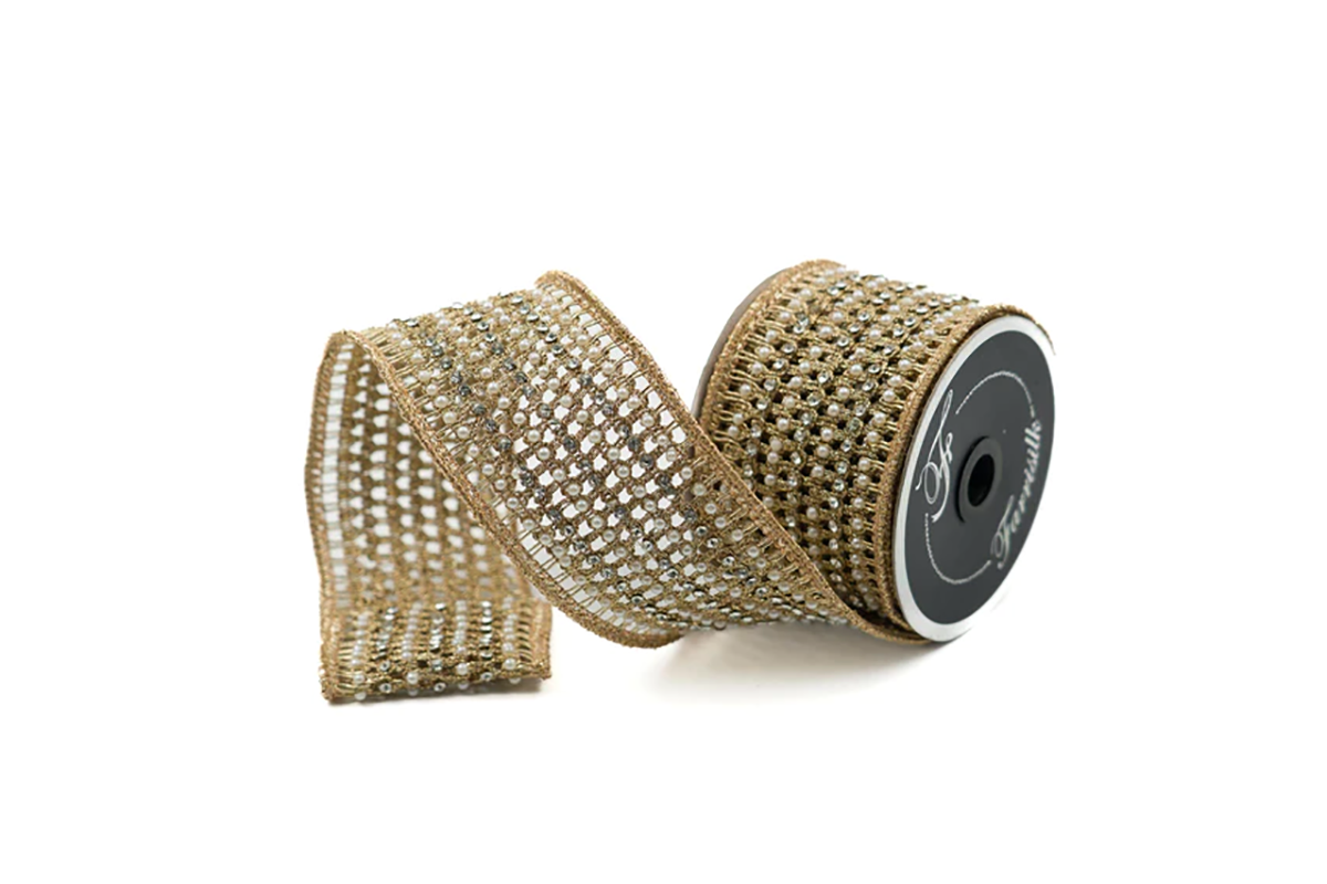 Victorian Pearl Gold 3"x5yd Wired Ribbon
